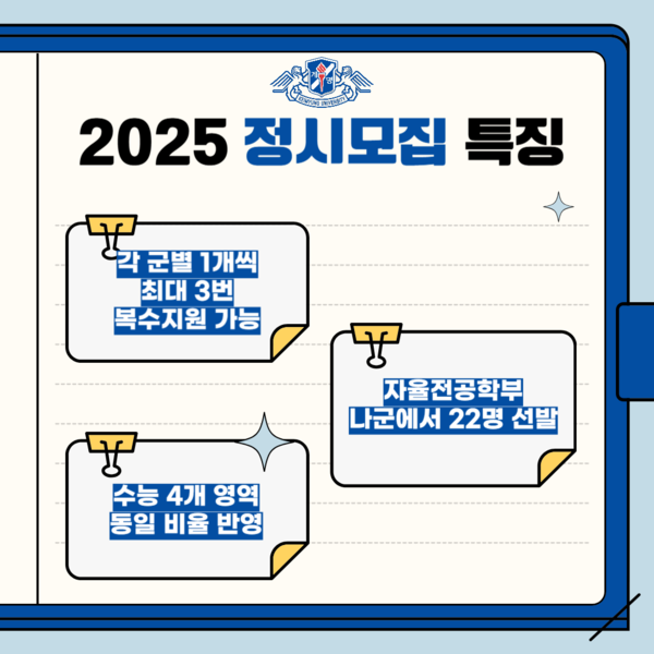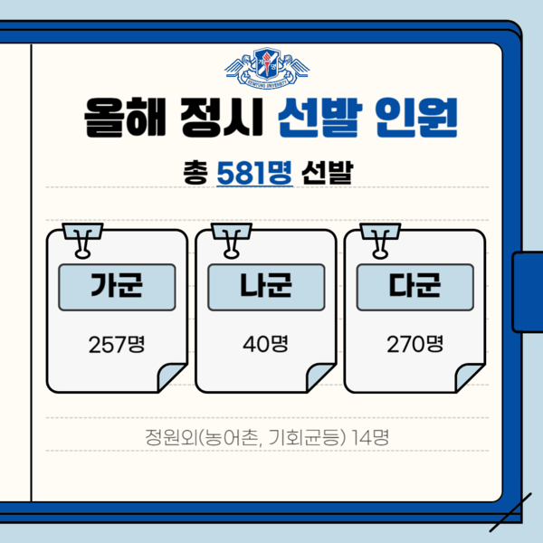 이영선 기자 news@dhinsight.co.kr 전체 < 기사목록 - SNS 기사보내기 페이스북(으)로 기사보내기 트위터(으)로 기사보내기 네이버블로그(으)로 기사보내기 URL복사(으)로 기사보내기 기사스크랩하기 다른 공유 찾기 현재위치 [정시모집] 입력 2024.12.24 10:29 댓글 0 인쇄 본문 글씨 키우기 가 본문 글씨 줄이기