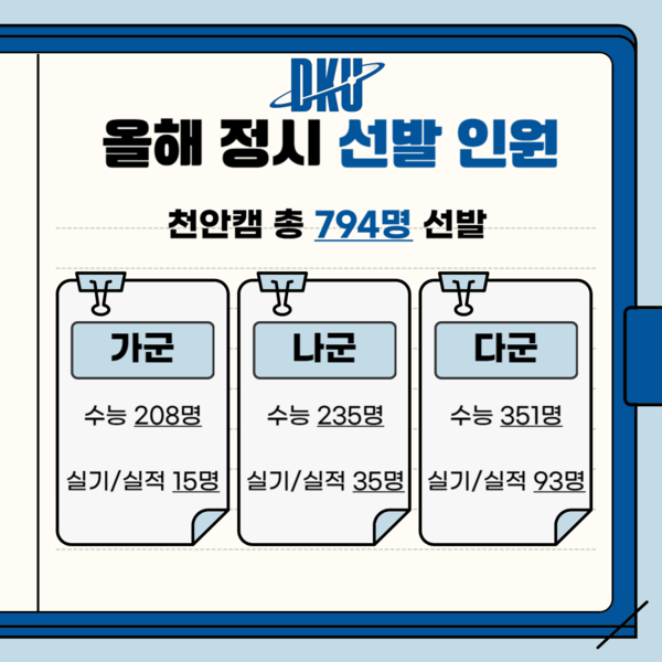 최은진 기자 news@dhinsight.co.kr 전체 < 기사목록 - SNS 기사보내기 페이스북(으)로 기사보내기 트위터(으)로 기사보내기 네이버블로그(으)로 기사보내기 URL복사(으)로 기사보내기 기사스크랩하기 다른 공유 찾기 현재위치 [정시모집] 입력 2024.12.24 11:33 댓글 0 인쇄 본문 글씨 키우기 가 본문 글씨 줄이기