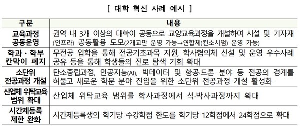 부산외대는 전체 51개 학과(전공) 교육과정을 296개 소단위 전공과정(모듈 교육과정)으로 전면 개편하고 전체 학과(전공) 대상으로 전국 최대 규모(1425명 대상)의 무전공 자율전공선택제를 도입했다. 경상국립대는 빅데이터, 항공·드론, 반도체 등 12개 분야 55개 소단위 전공과정을 신설하여 미래전략산업 인재 양성에 힘을 기울이고 있다.