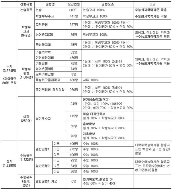 학생부교과 942명, 학생부종합 1084명 등 총 3374명 모집