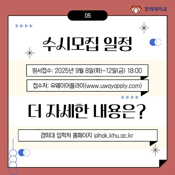 최은진 기자 news@dhinsight.co.kr 전체 < 기사목록 - SNS 기사보내기 페이스북(으)로 기사보내기 트위터(으)로 기사보내기 네이버블로그(으)로 기사보내기 URL복사(으)로 기사보내기 기사스크랩하기 다른 공유 찾기 현재위치 [수시모집] 입력 2025.08.31 11:27 수정 2025.08.31 11:34 댓글 0 인쇄 본문 글씨 키우기 가 본문 글씨 줄이기