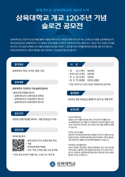 삼육대 정성진 브랜드전략본부장은 “개교 120주년은 대학의 지난 발자취를 돌아보고, 미래 발전을 준비하는 중요한 전환점”이라며 “삼육대의 정체성과 비전을 함축적으로 담아낸 창의적이고 상징성 있는 슬로건이 나오기를 기대한다”고 말했다.