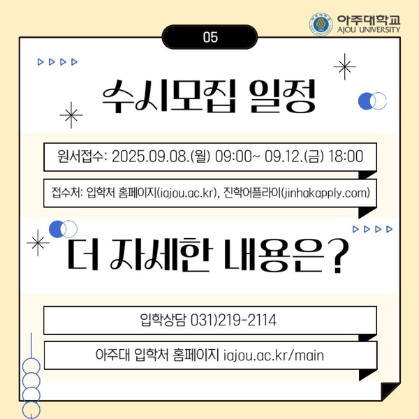 이영선 기자 news@dhinsight.co.kr 전체 < 기사목록 - SNS 기사보내기 페이스북(으)로 기사보내기 트위터(으)로 기사보내기 네이버블로그(으)로 기사보내기 URL복사(으)로 기사보내기 기사스크랩하기 다른 공유 찾기 현재위치 [수시모집] 입력 2025.09.02 11:05 수정 2025.09.02 11:09 댓글 0 인쇄 본문 글씨 키우기 가 본문 글씨 줄이기
